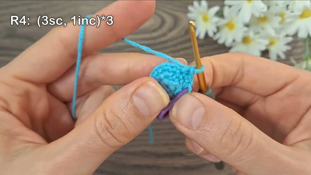 - sc in next 4 chains