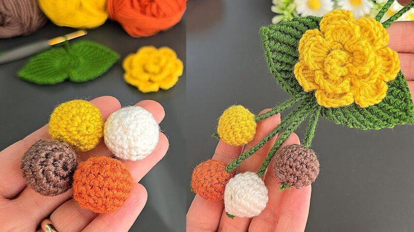 Here is a step-by-step tutorial for each part of the project: berries, stems, leaves, and the layered flowerβexactly like the image.