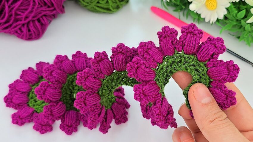 Here is a clear, step-by-step tutorial for making the beautiful 3D puff-flower crochet motif shown in the image.