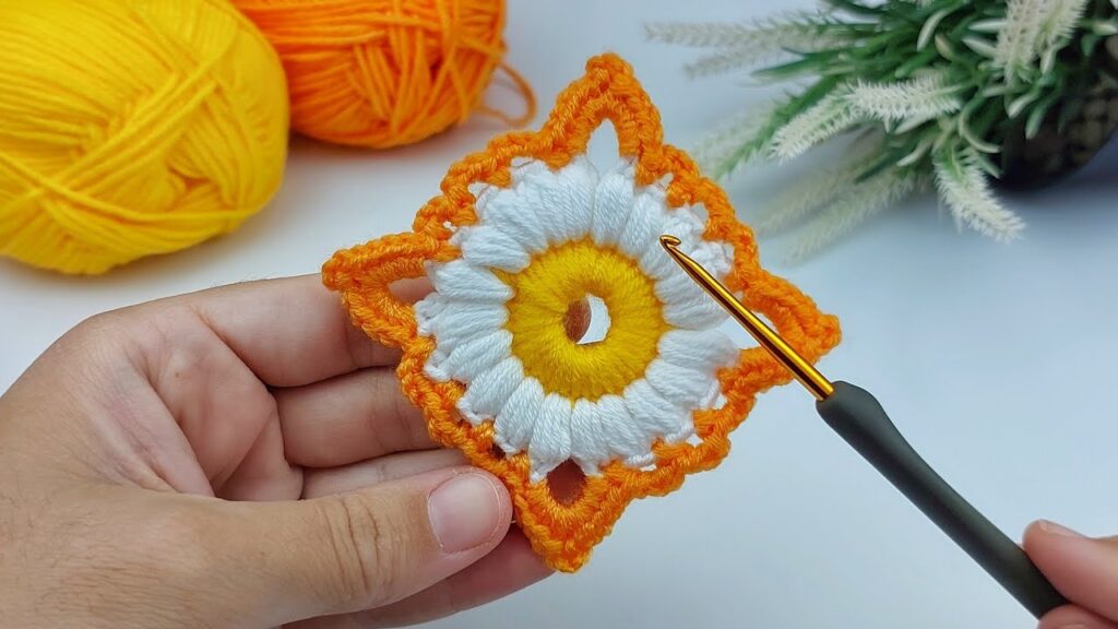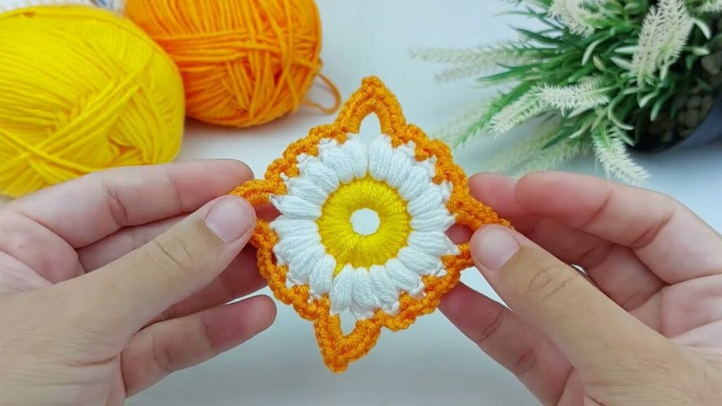 This is a crochet flower square motif with a daisy-like center and diamond shape — perfect for blankets or decorative projects. Here’s a detailed step-by-step tutorial to make it: