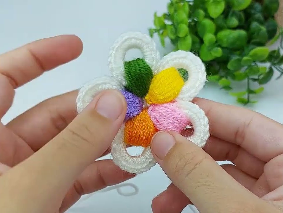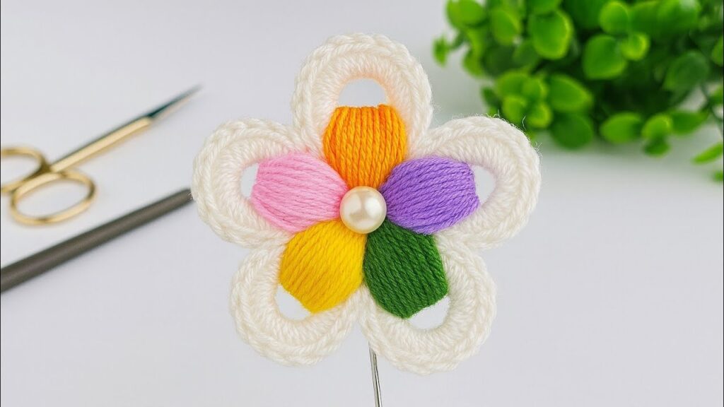 🌼 SUPER DETAILED TUTORIAL — Yarn Flower with Pearl Center
