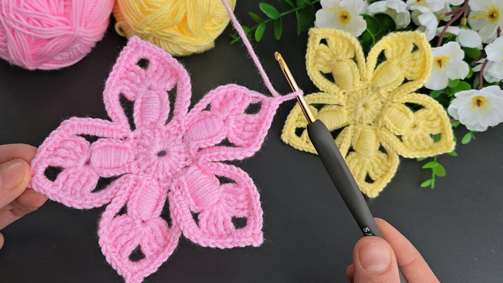 - Use contrasting yarn colors for a two-tone flower (center one color, petals another).