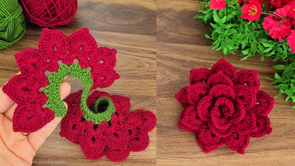 That’s a crochet spiral flower — a beautiful layered design that starts as a flat spiral and curls into a 3D rose-like shape. 🌹