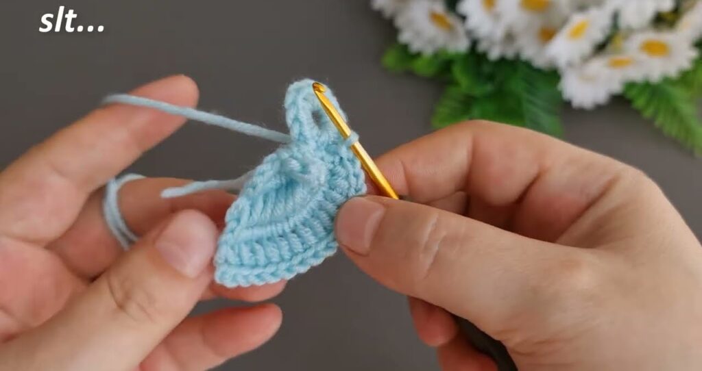 👉 After this round, you’ll have 5 pretty curved petals forming a flat flower.