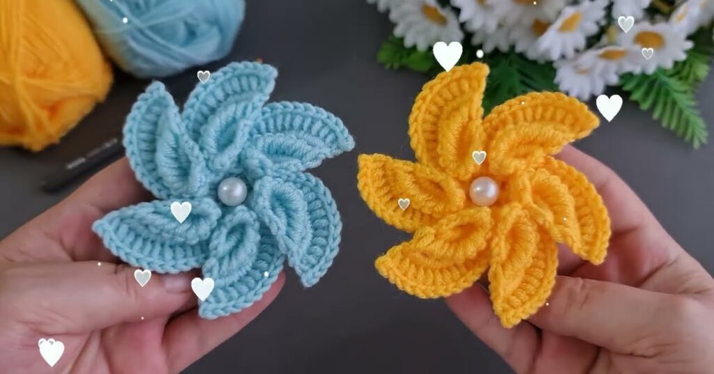 - A 3D double- or triple-layer crochet flower,