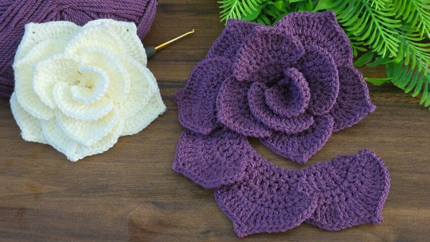 That’s a crochet spiral rose flower, a beautiful 3D flower pattern! 🌹