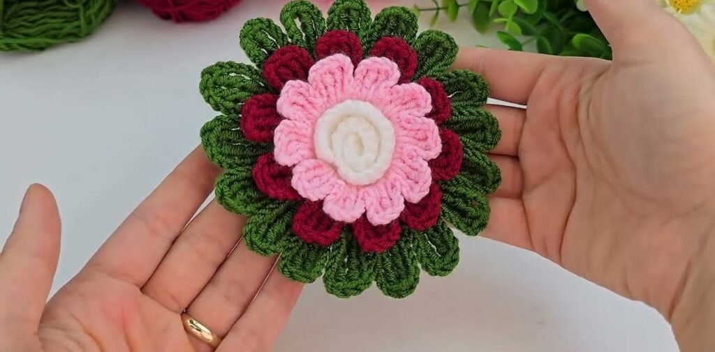 ✅ You now have three rows of layered ruffles — pink, red, and green.