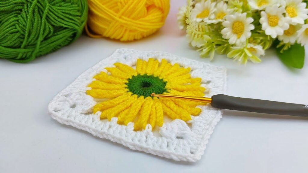 easy-to-follow pattern for the sunflower shown in the image. I will break it into smaller steps so you can follow without getting confused ๐ป๐