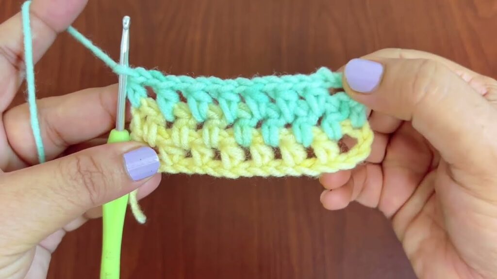 - Pick up the new color and pull it through the last 2 loops to finish the stitch.