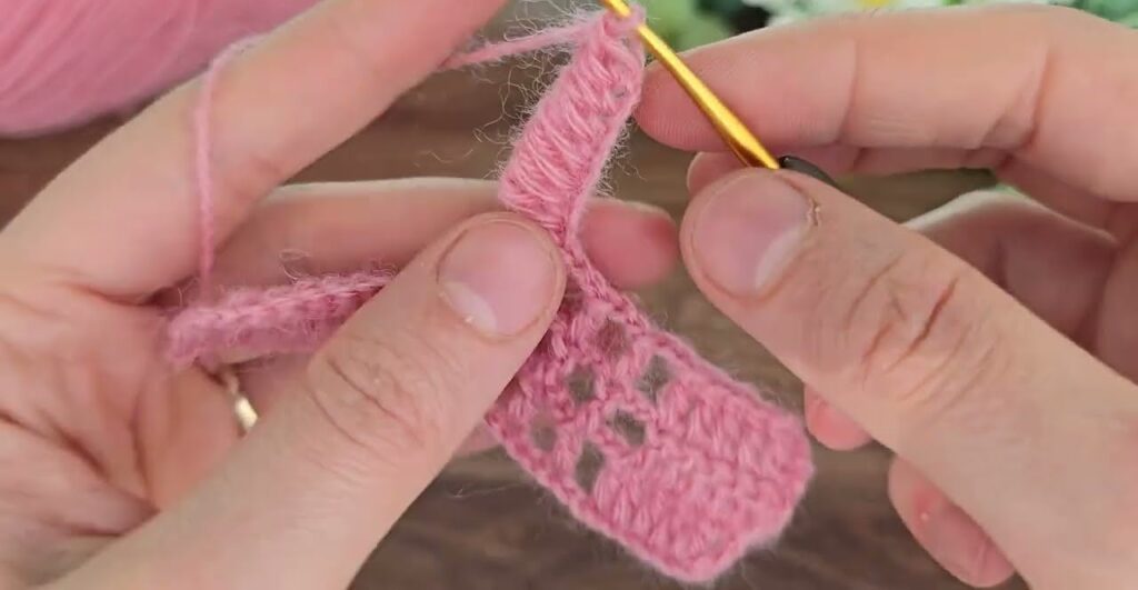 - Same as Row 3, but shift puff stitches vertically (align them in columns).