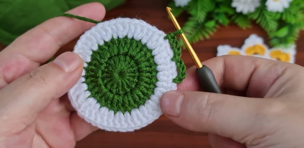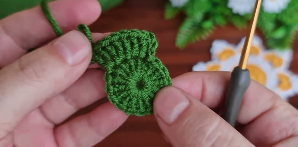 - Sl st into the next dc (from previous round) to anchor the petal.