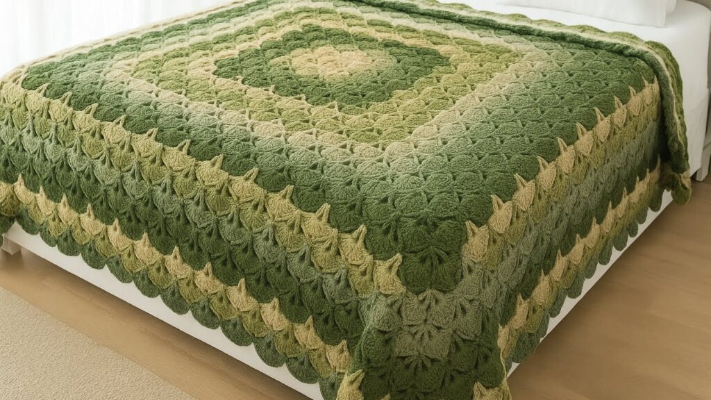 This beautiful blanket is a Catherine Wheel Granny Square Blanket, made using graduated shades of green. Below is a very detailed, row-by-row tutorial including stitch instructions, color change tips, and pattern growth so you can make it exactly like the photo.