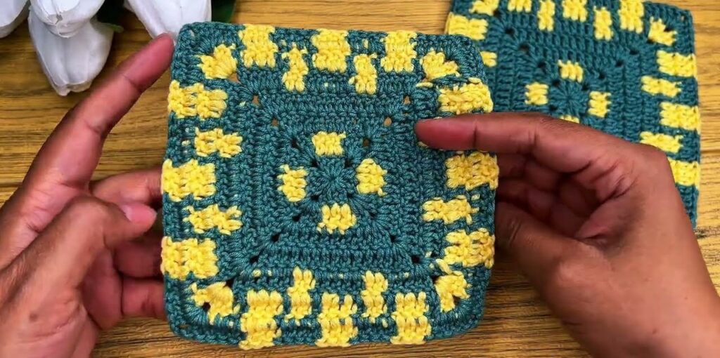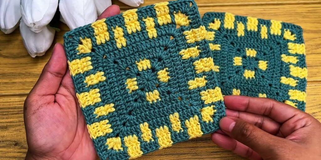 This is a two-color tapestry crochet square (also called mosaic / pixel crochet) made with single crochet stitches, changing colors to form the pattern. I’ll explain it step by step in a simple way so you can follow even without a chart.
