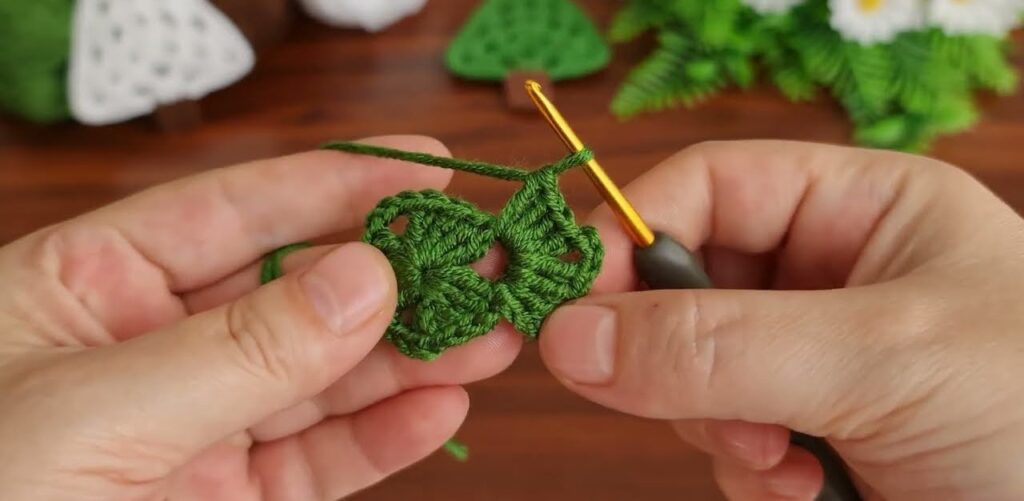 - Slip stitch back into the top of the tree.