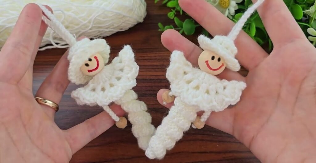 This is a small crochet angel / doll ornament (often used as a Christmas decoration or keychain). I’ll explain it step by step, simple and beginner-friendly, based on the picture.