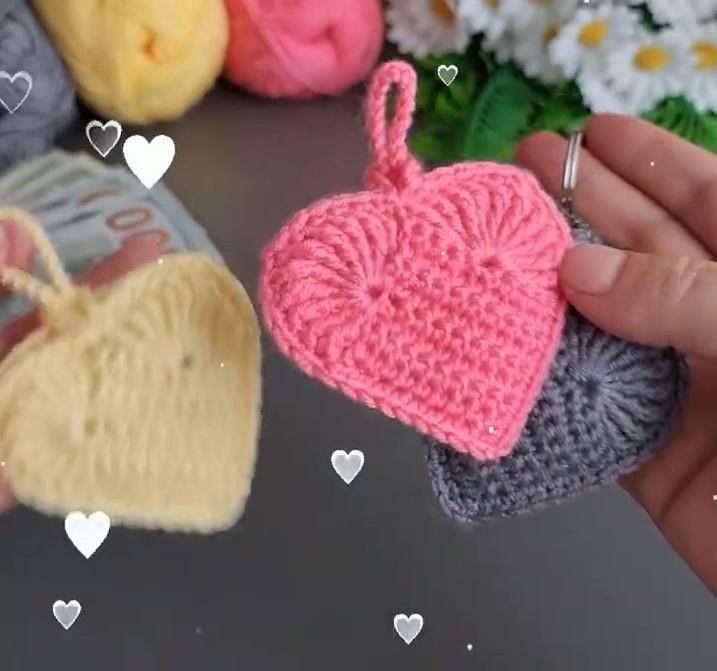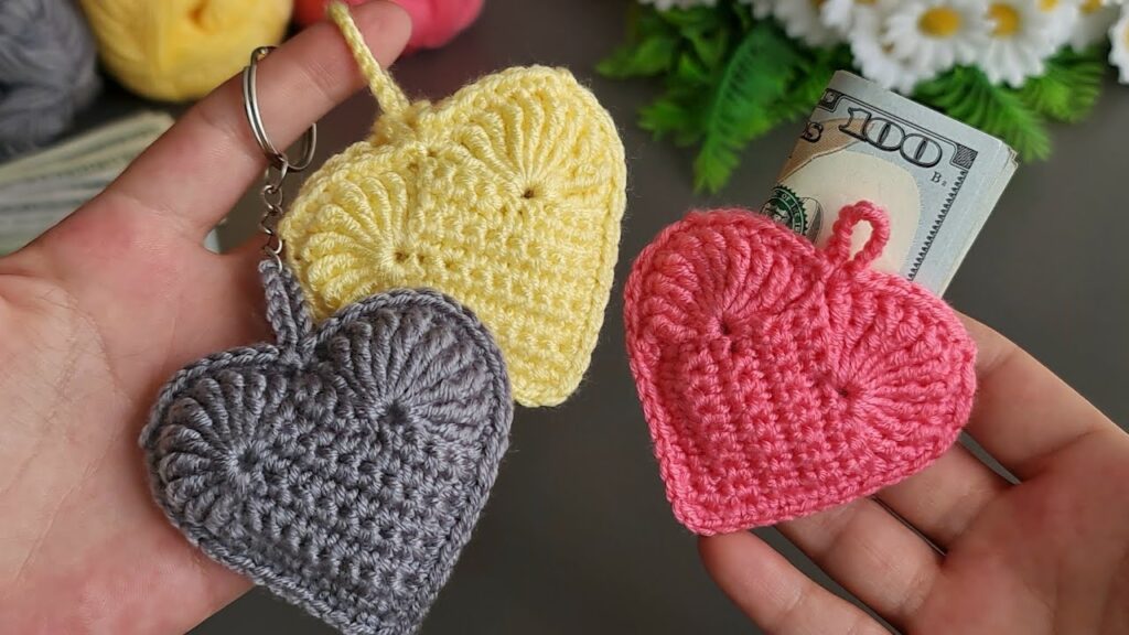 These are crochet heart pouches/keychains, often used as small gifts or for holding coins or notes. Let’s go step by step on how to make them: