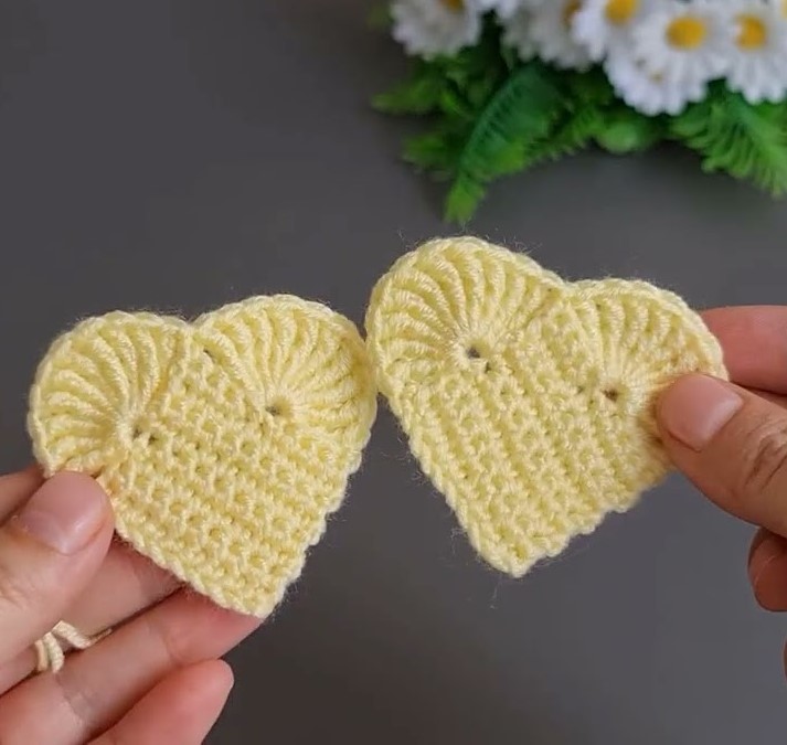 We’ll start by crocheting one heart shape, then repeat it for the other side.