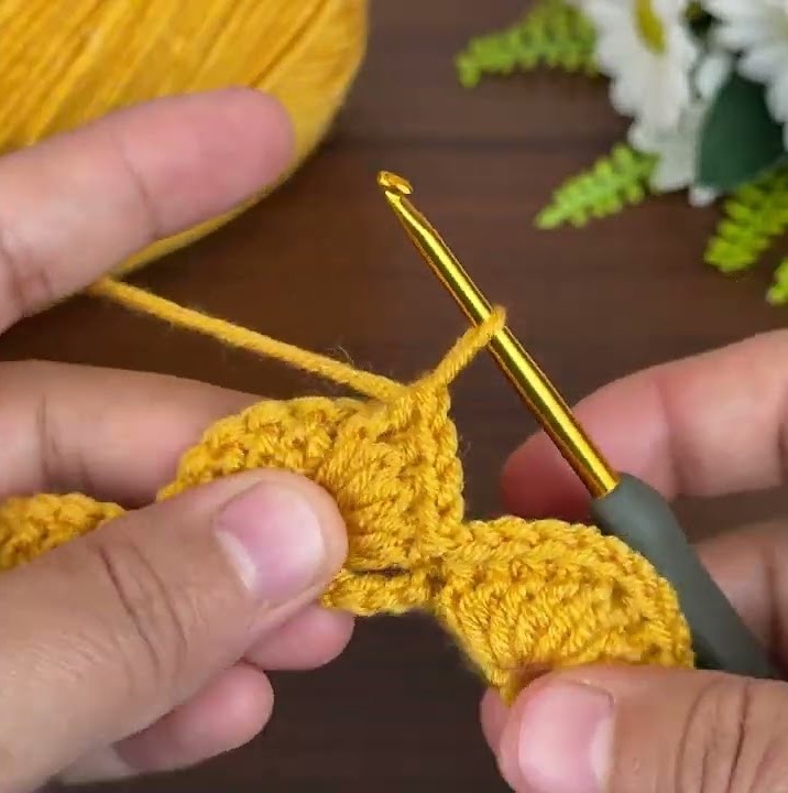 ๐น Step 4: Row 3 โ Base Row (V-Stitches Again)