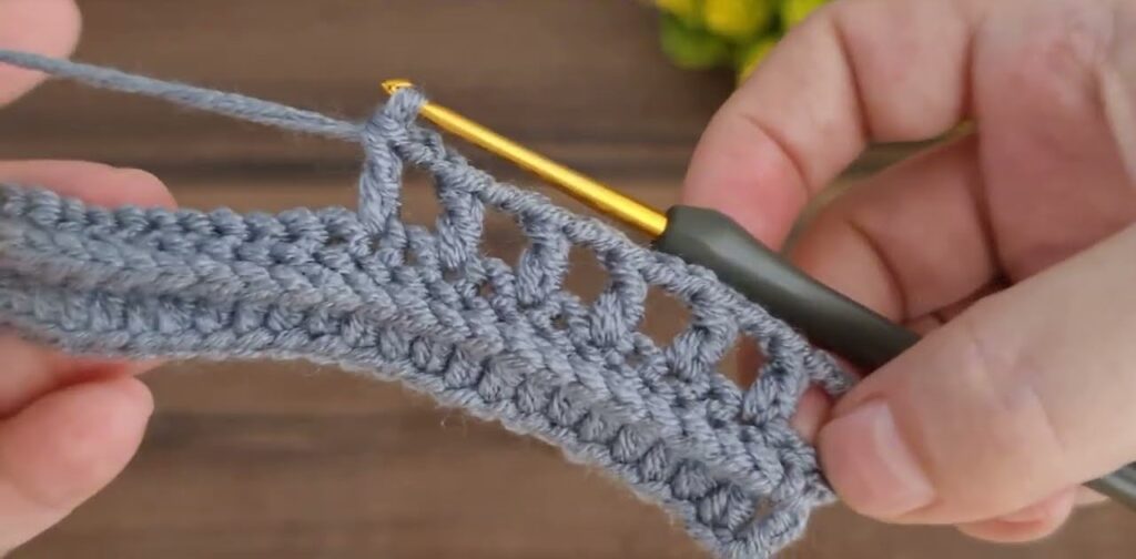 - Work 1 sc in first stitch, ch 2, skip 2 dc, sc in next dc.