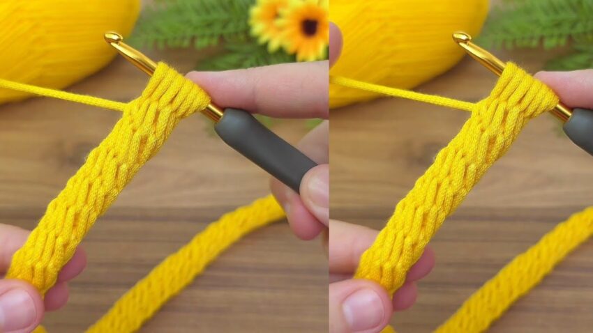 - Yarn over again and pull through both loops → complete the stitch.