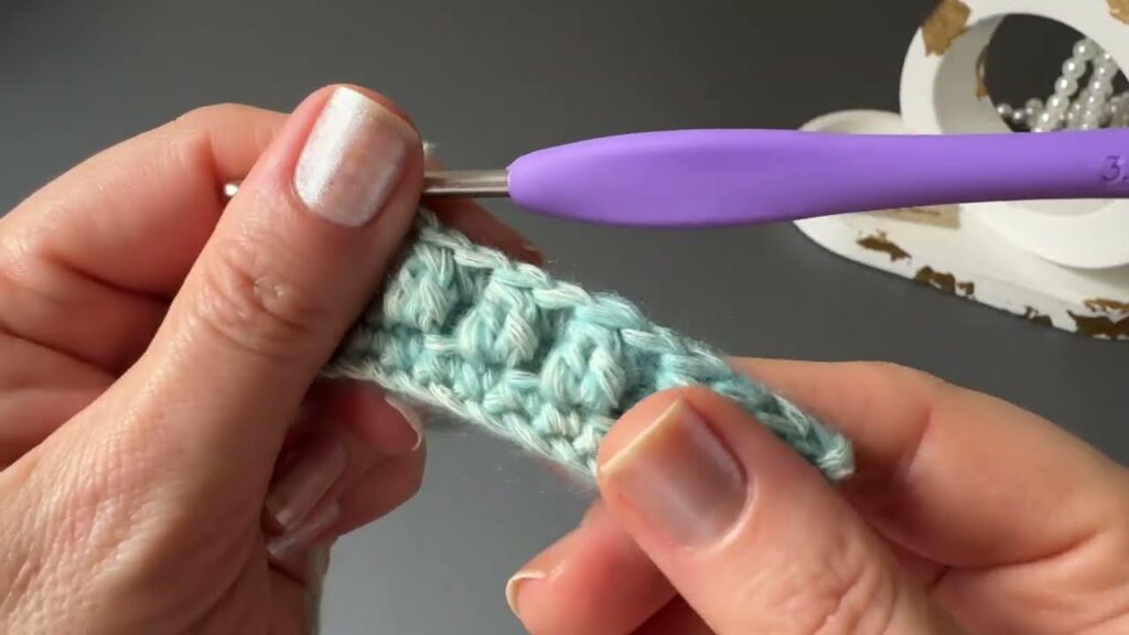 - Pull up each loop of the puff evenly tall (same height as a dc stitch).