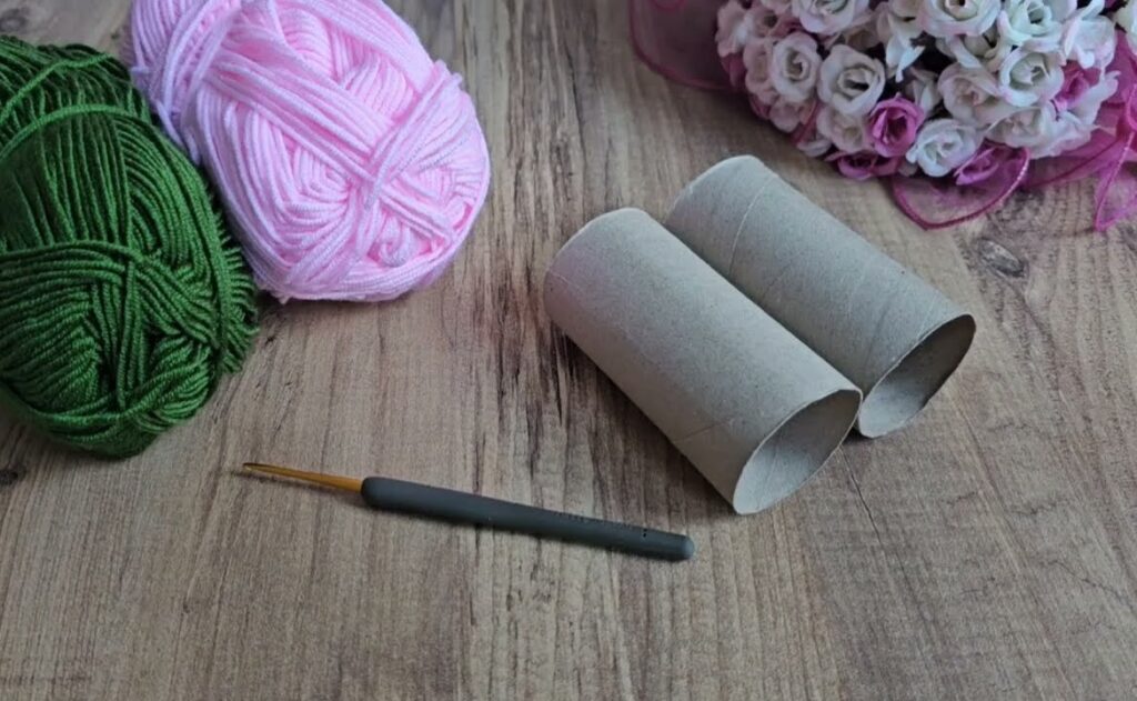 1. Slide the crochet sleeve over the cardboard tube.
