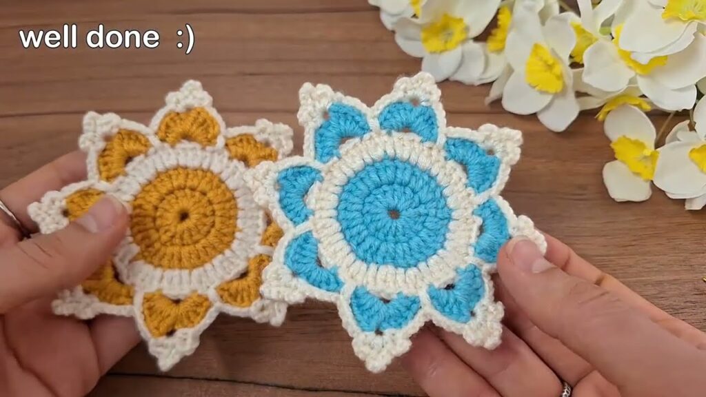 That’s a lovely crochet motif — it looks like a flower or star pattern made using two colors of yarn. Here’s how you can make it step-by-step 👇