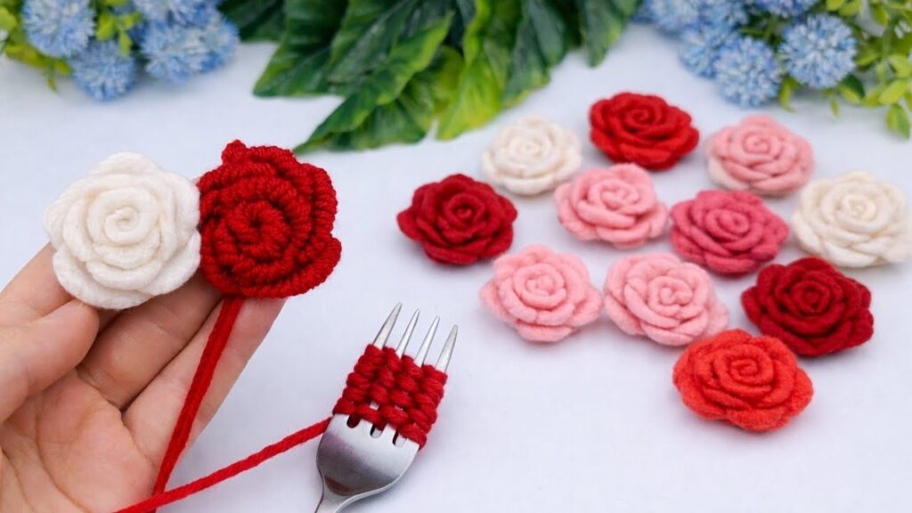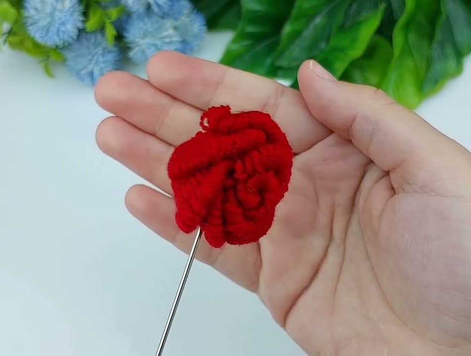 - Stitch through the bottom of the rolled rose: