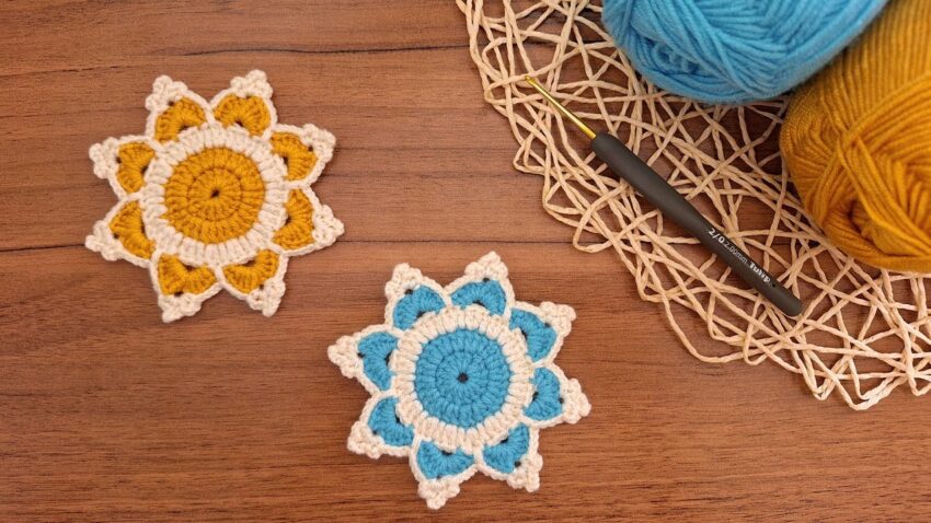 That’s a lovely crochet motif — it looks like a flower or star pattern made using two colors of yarn. Here’s how you can make it step-by-step 👇