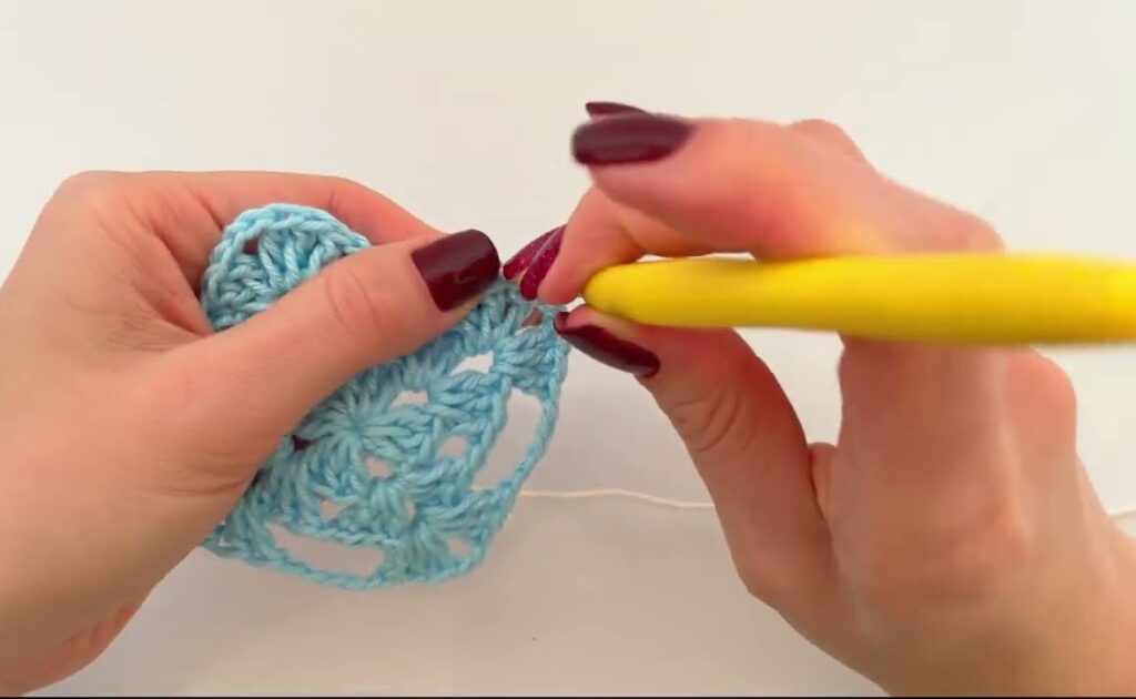 → You should now have 4 sets of 3 dc with 4 ch-2 corners. - Tighten the ring.