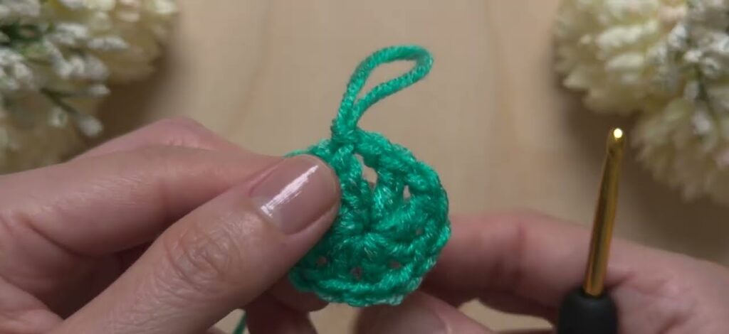 2. Ch 3 (counts as dc), make 11 dc in ring.