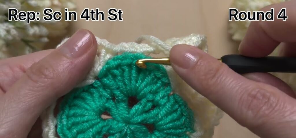 3. Ch 2, dc in next gap between petals, ch 2, dc in same space β€” repeat around.