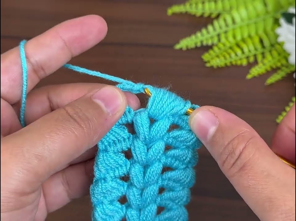 🧵 You now have Row 1 done — it will look like a row of “V” shapes spaced evenly apart.