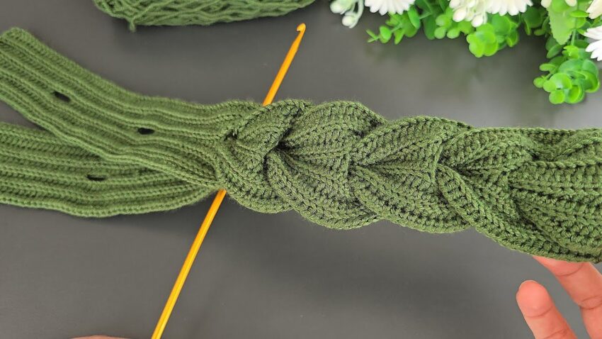 crochet braid (or braided stitch band).The project in your photo isn’t just three separate strips sewn together — it’s actually one long piece with cut-out slits that later get braided. That’s why you see those little “holes” along the length. Let’s do it step by step: