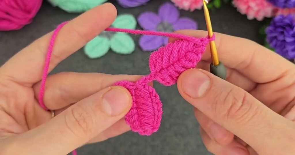 - Take your petal color yarn (e.g., mint green).