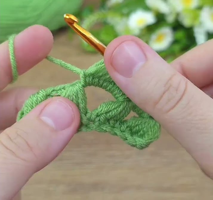 (If you prefer smaller petals, use 4 loops; for bigger, use 6.) - Insert your hook through all 5 loops at once.