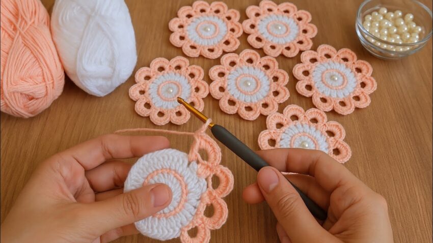 🧵 Crochet Flower Motif with Pearl Center (Detailed Tutorial)