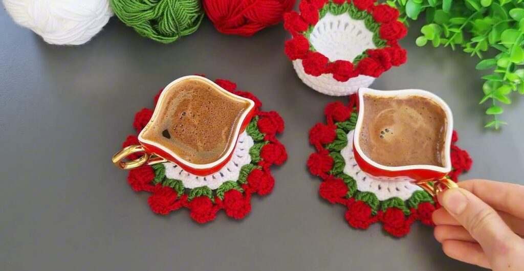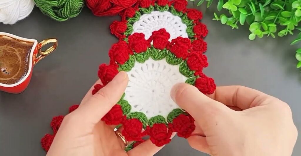 ๐น Ultra-Detailed Crochet Pattern โ 3D Rose Edge Coaster