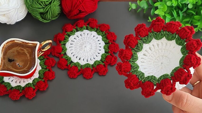 ๐น Ultra-Detailed Crochet Pattern โ 3D Rose Edge Coaster