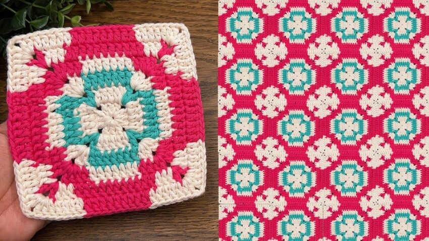 ⭐ Crochet Pattern: 3-Color Mosaic Granny Square