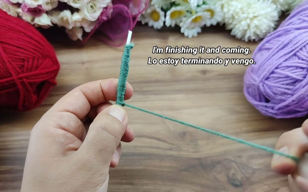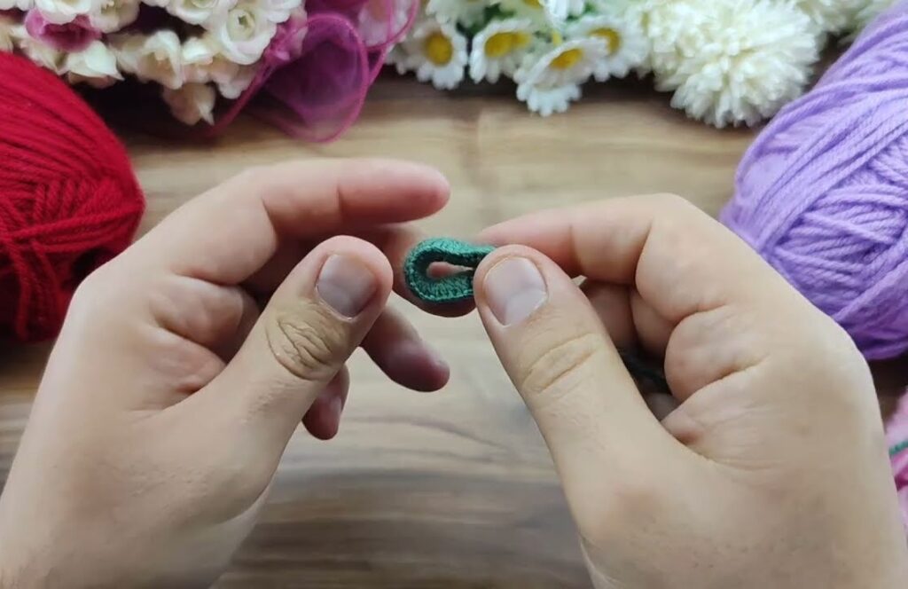 - Cut yarn, leave a 2–3 cm tail