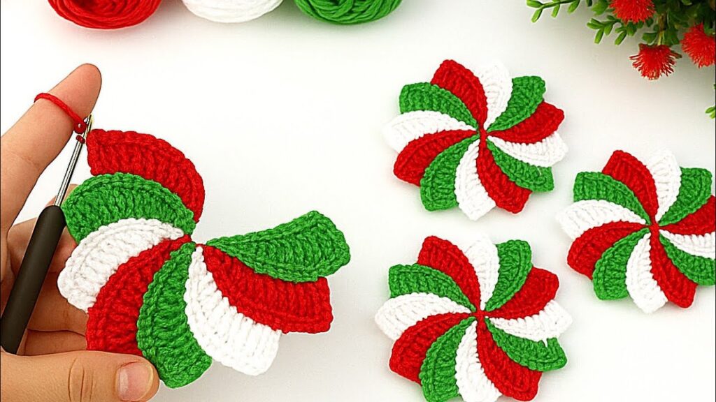 This is a crochet spiral pinwheel flower / peppermint-style motif made from separate curved petals, then joined in the center. Hereβs a clear step-by-step tutorial you can follow π§Ά
