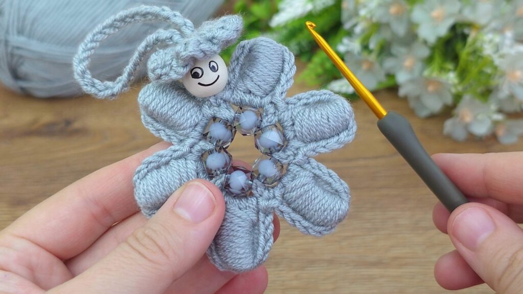 🌸 Crochet Beaded Flower Ornament Tutorial (with Face)