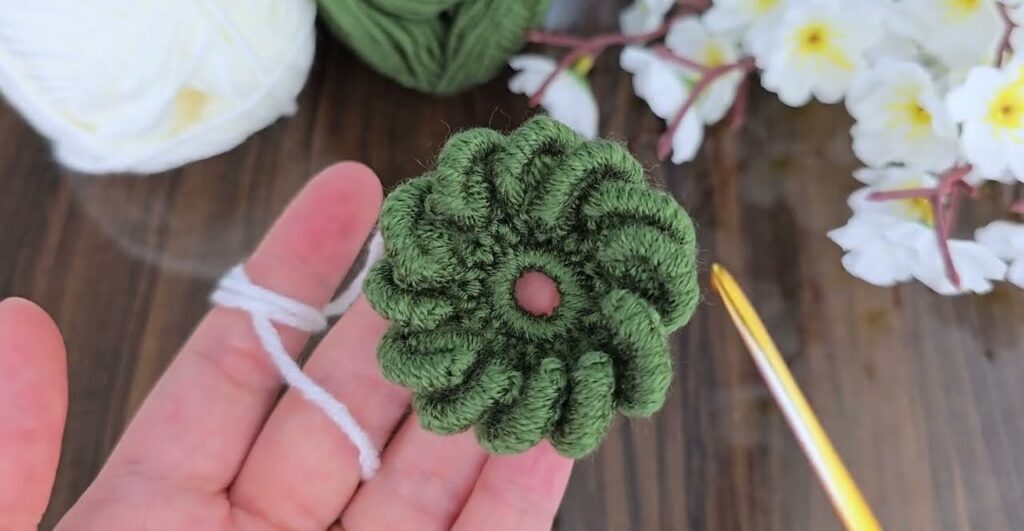 ✅ You now have a spiral green ring, which is the flower’s center.