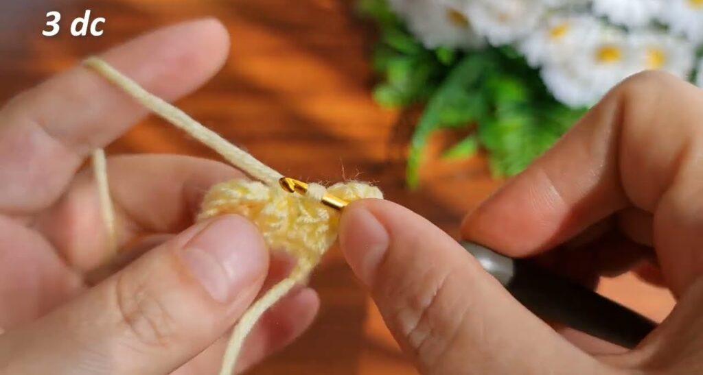- Then crochet 25β30 sc around the new yellow ring, join, and fasten off.