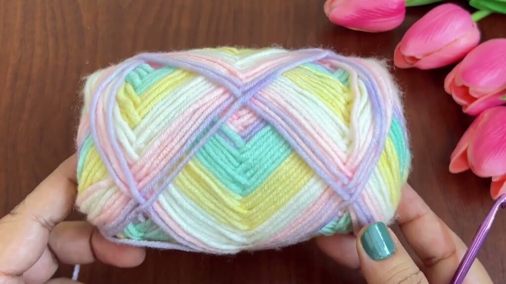 - Yarn: 5 colors of medium-weight (category 4) acrylic yarn (pastel mint, lavender, pink, white, yellow).