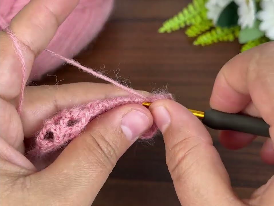 • dc in the 6th chain from hook (creates 1 ch-1 space).